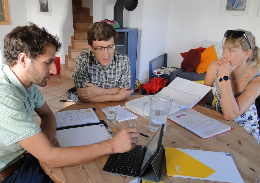 Vor den großen Investitionen stand eine intensive Beratung: Simon (Mitte) und Susanne Steuer im Gespräch mit eza!-Energieberater Robert Immler